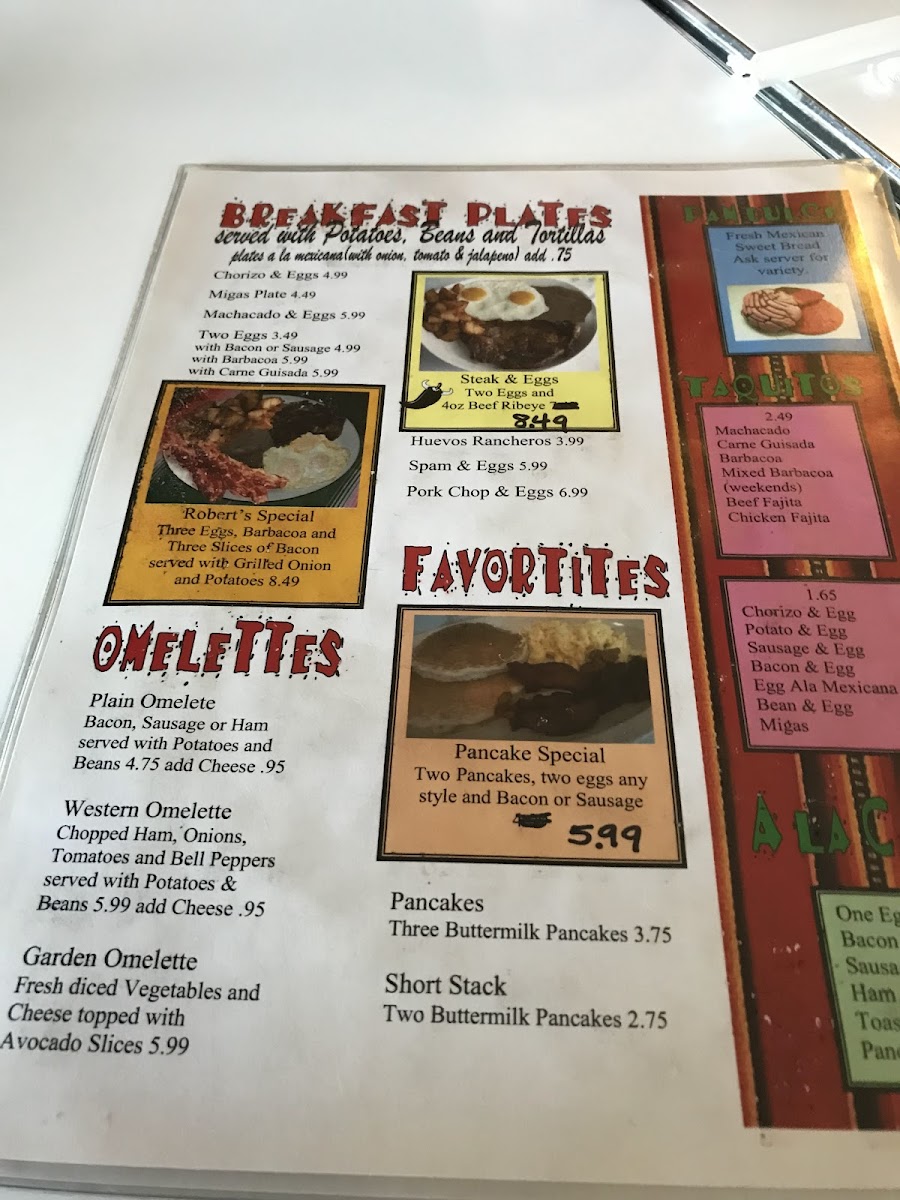 The menu features highlights like the rich Carne Guisada and scrumptious Barbacoa, both priced at an amazing US$2.99, showcasing the restaurant's commitment to quality and value. Breakfast enthusiasts will delight in the Huevos Rancheros Plate for US$3.99 or the flavorful Migas Plate at US$5.10. Don’t miss their fresh, homemade flour tortillas at just US$0.75, which perfectly complement any dish.